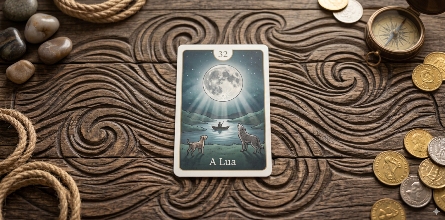 Chegamos à Carta 32 (A Lua). Diferente do Sol, que traz a luz direta e a clareza, a Lua na cartomancia preditiva lida com o que é refletido: as emoções, a intuição e, principalmente, o reconhecimento e a fama. No sistema Lenormand, ela é a carta das honrarias e da flutuação.