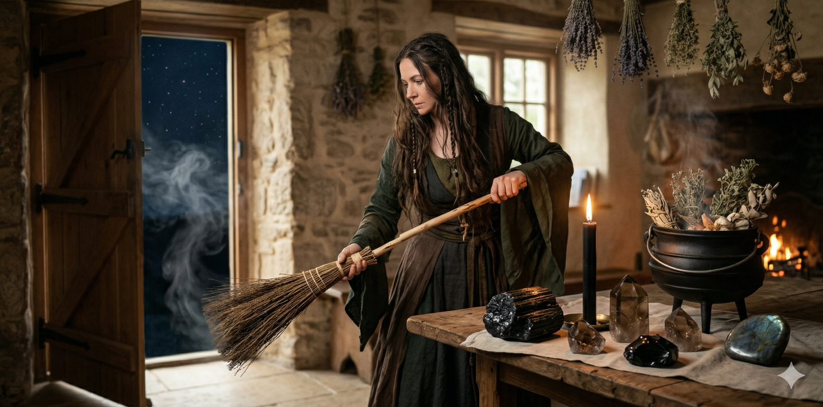 - Vassoura de Ervas ou Vassoura Mágica: Usada para varrer simbolicamente (e fisicamente) a energia da porta para fora.
