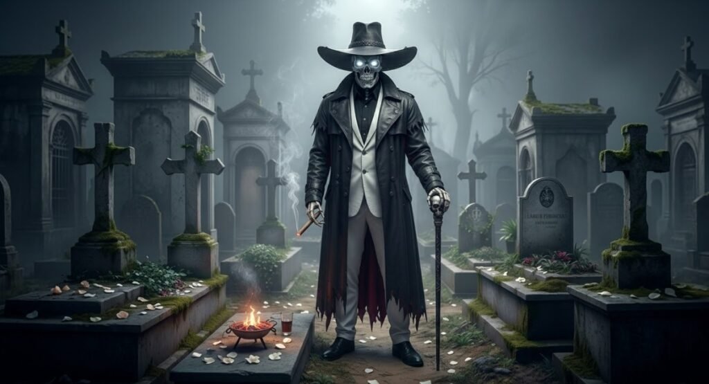 Importante: Ao contrário do que o nome sugere, ele é uma entidade de extrema luz e lei. Sua aparência de caveira serve para lembrar que a vaidade humana é passageira e que a alma é o que realmente importa.