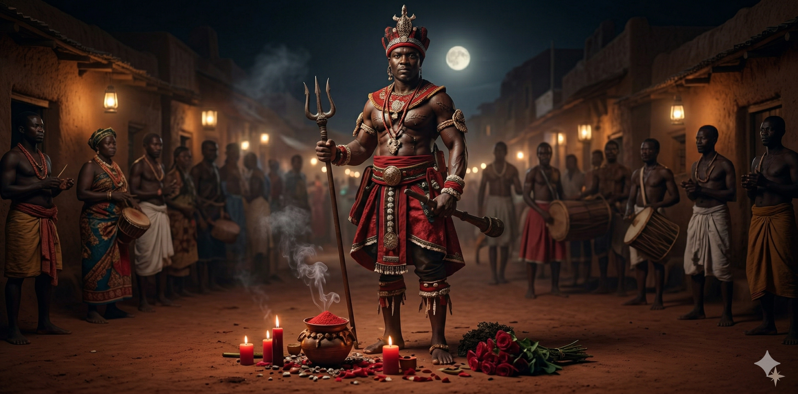 Por isso, Olodumare determinou que Exu deve ser sempre o primeiro a ser saudado e a receber oferendas em qualquer ritual. Se Exu não for satisfeito primeiro, o caminho para os outros Orixás permanece fechado. Ele é o “Dono das Encruzilhadas”, o ponto onde todas as possibilidades se cruzam.